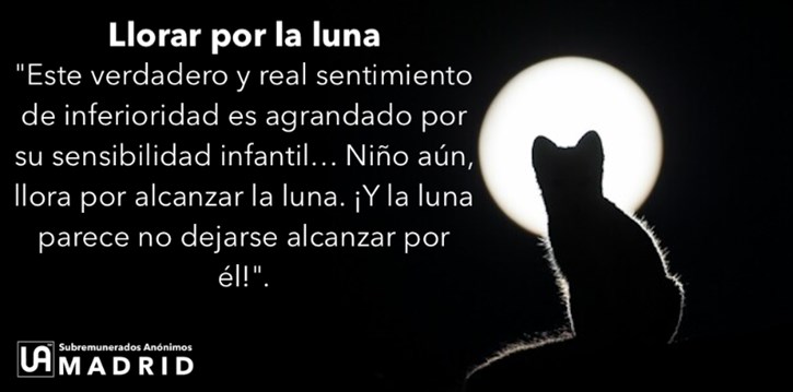 "Este verdadero y real sentimiento de inferioridad es agrandado por su sensibilidad infantil y es este estado de cosas lo que genera en él ese insaciable y anormal deseo de aprobación y de éxito a los ojos del mundo. Niño aún, llora por alcanzar la luna. ¡Y la luna parece no dejarse alcanzar por él!".