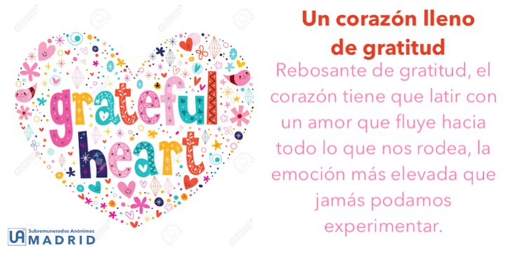 Yo creo que nosotros en Alcohólicos Anónimos somos afortunados por el hecho de que constantemente se nos recuerda la necesidad de estar agradecidos y de cuán importante es la gratitud para nuestra sobriedad. Yo estoy verdaderamente agradecido por la sobriedad que Dios me ha dado por medio del programa de A.A. y me agrada poder devolver lo que libremente se me dio. Estoy agradecido no solamente por la sobriedad, sino por la calidad de vida que me ha traído mi sobriedad. Dios ha tenido la bondad de darme días sobrios y una vida dotada de paz y satisfacción, así como la capacidad de dar y recibir amor, y la oportunidad de servir a otros - en nuestra Asociación, en mi familia y en mi comunidad. Por todo esto, yo tengo "un corazón lleno de gratitud".